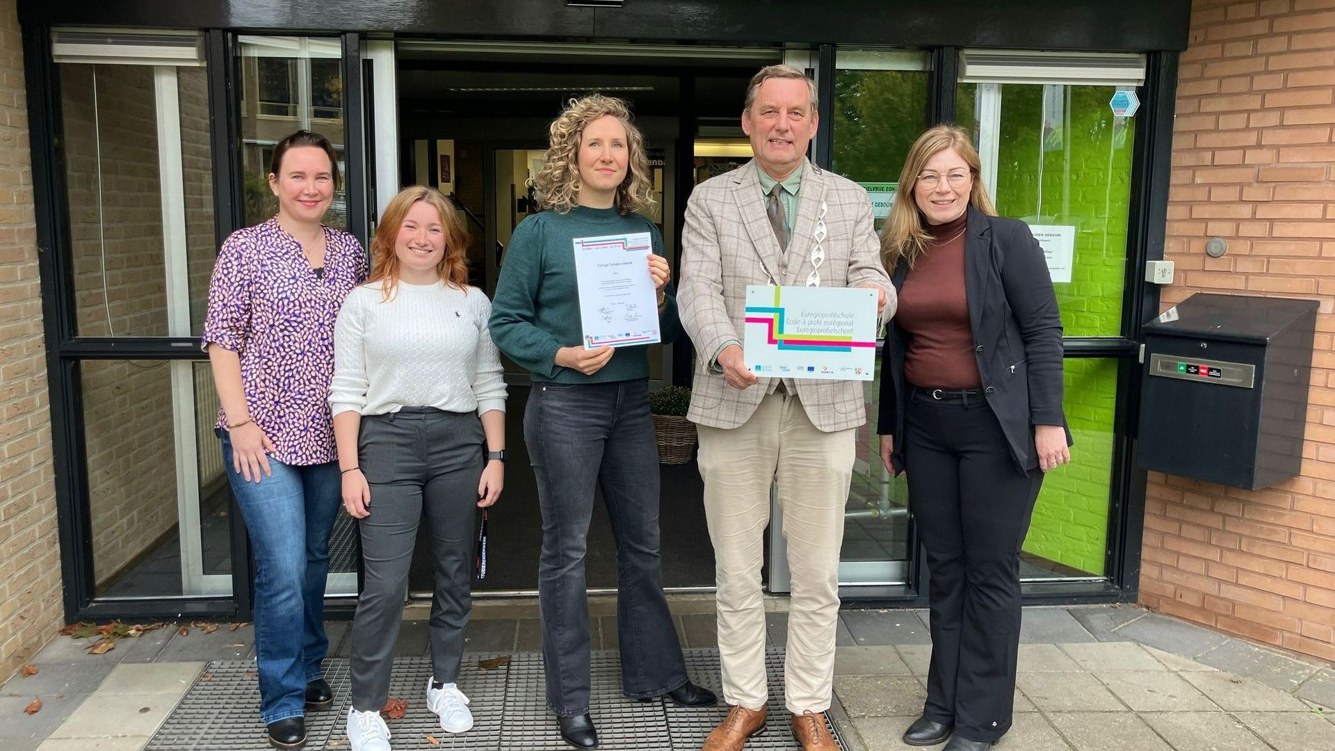 Burgemeester Stapelkamp onthult bord ‘Euregioprofilschule’ bij Schaersvoorde